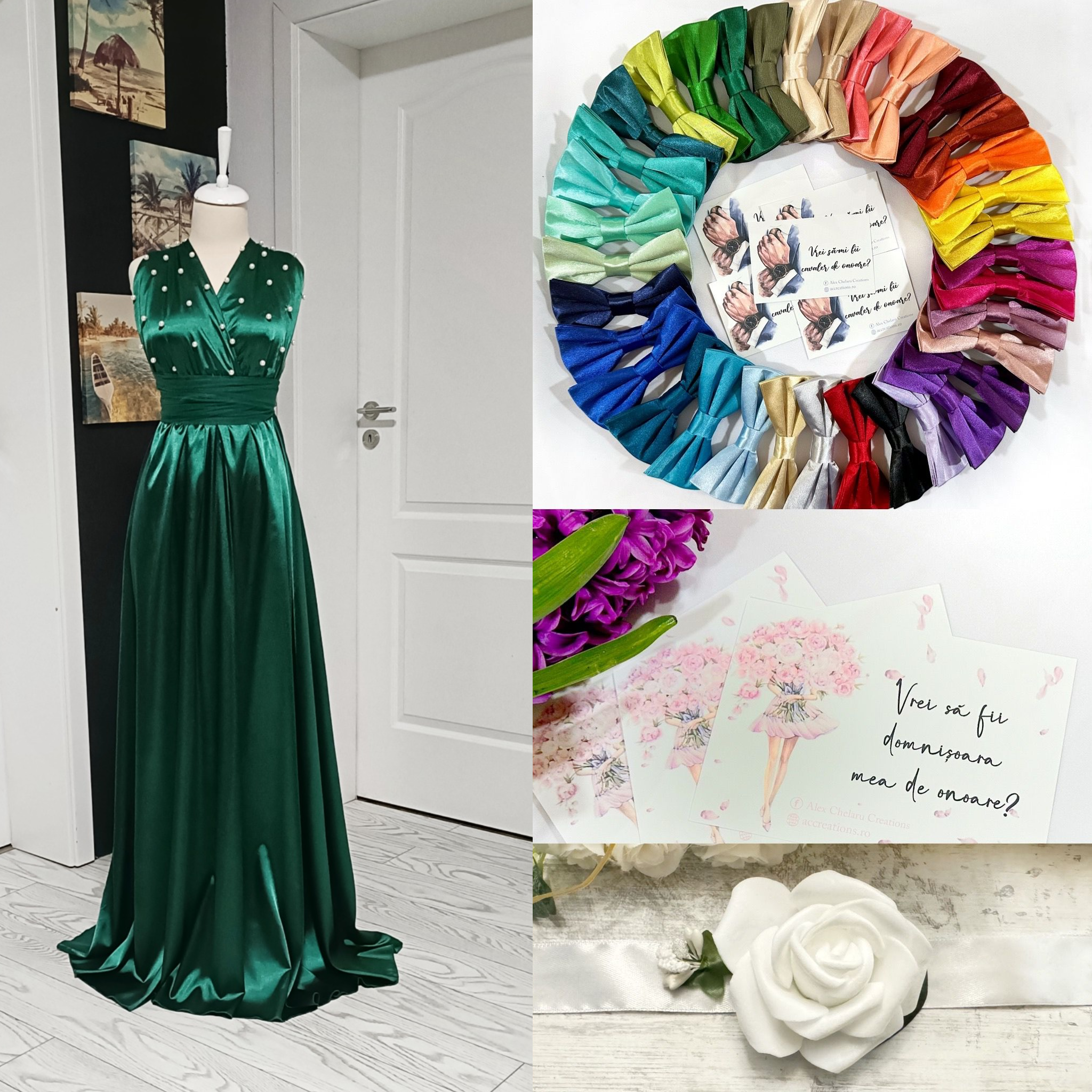 Întreținere:Pachet Special: Rochie Domnișoară de Onoare – Papion – Brățară – Invitații cod10