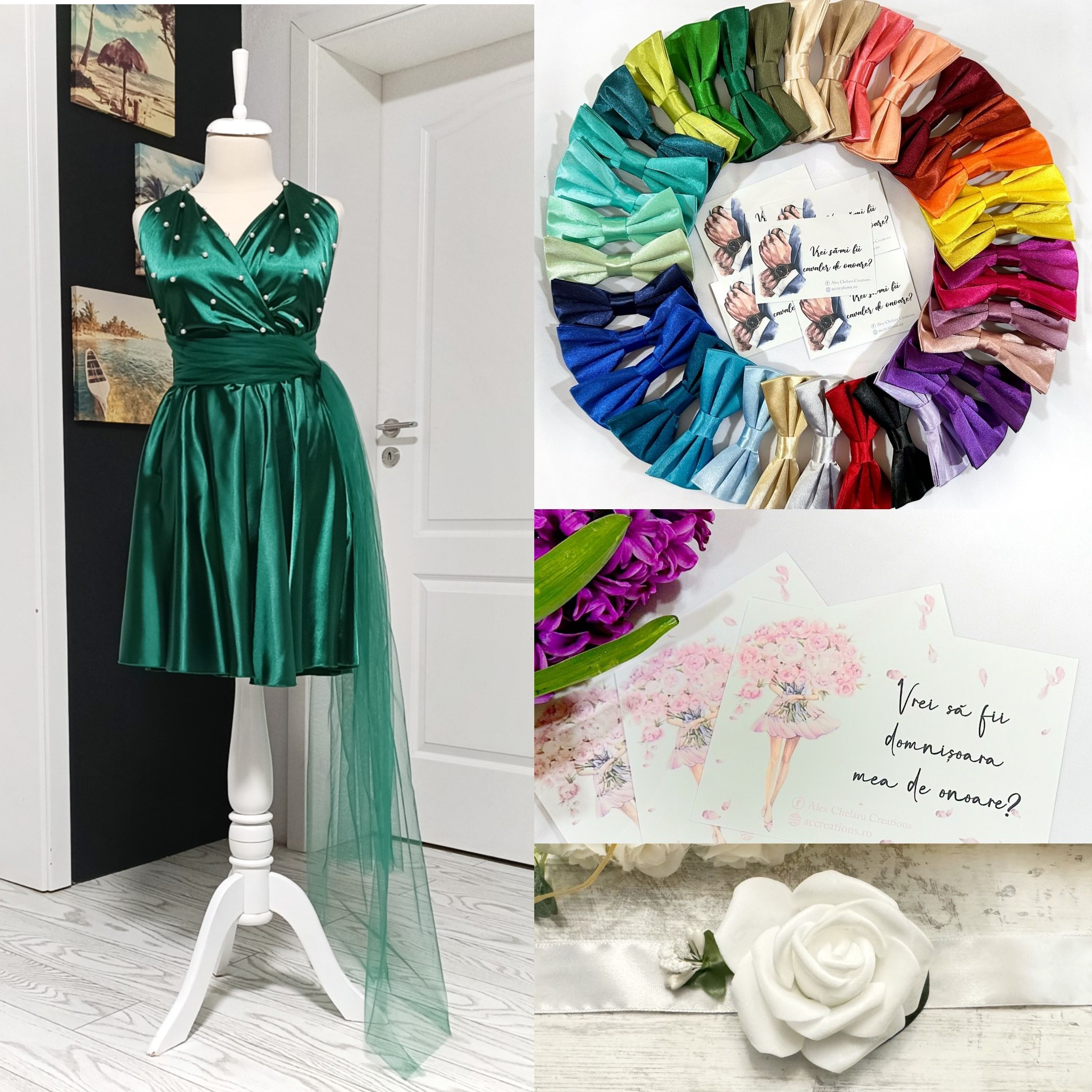 Întreținere:Pachet Special: Rochie Domnișoară de Onoare – Papion – Brățară – Invitații cod14