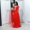 Rochie pe o parte lunga din lycra si tulle cu volanas de tulle R202311, lunga din material satin si tulle. Se poate executa si in culori albastru, roz, verde, bordo, mov, lila,rosu,roz prafuit, albastru regal etc. Lungimea fustei din talie este de 110 cm. Rochia face parte din categoria rochii versatile.